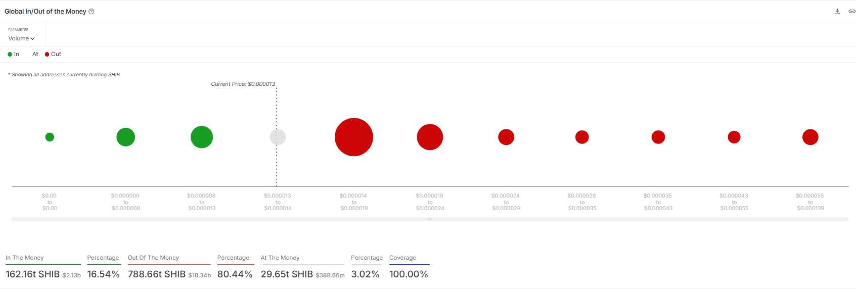 Shiba Inu (SHIB)全球获利/亏损情况,来源:IntoTheBlock
