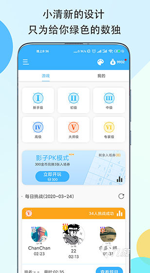 通过数字排列完成各种解谜,没有接触过的玩家也可以快速的摸清里面的规则,还可以学到一些实用的技巧。里面有四宫格和挑战赛等多种玩法,每一种都可以让大家专注投入,玩起来非常轻松解压。每天都会更新不同关卡,供大家挑战,不会觉得枯燥,整个画面都干净明亮,看着十分舒服,大家在解谜的过程中可以感受到乐趣,又可以锻炼到思维。