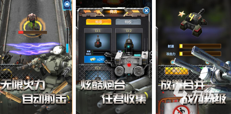 这是款画质极高且场景塑造真实的放置打僵尸游戏,多样炮台任你选择可实现站桩式打僵尸,甚至能将低等级炮台快速合成并迅速提升战斗力,放置后的机械炮台会自动射击帮你扫清障碍,科幻机甲炮台与尸潮的正面对抗刺激性拉满,张弛有度的写实背景足以给人一种代入末日的感觉,酷炫炮台任意解锁升级提供的闯关打僵尸快感也无可挑剔。