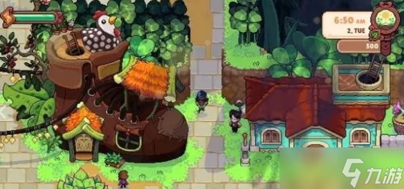 在《四叶草农场》中,玩家将以微观视角进行农耕活动,需要喷出巨大的水滴灌溉作物,将胡萝卜和南瓜切片收割,并照料蛾子、蜜蜂、蝴蝶和瓢虫等农场动物。游戏创新性地引入了"八卦系统",玩家通过收集流传的传闻来构建科技树,拼凑线索揭开邻居的秘密和村庄的神秘过往。