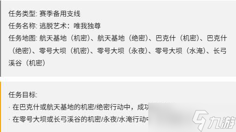 《三角洲行动》S7赛季中,“逃脱艺术:唯我独尊”任务要求玩家在指定地图中成功完成撤离。下面和九游小编一起来看看吧